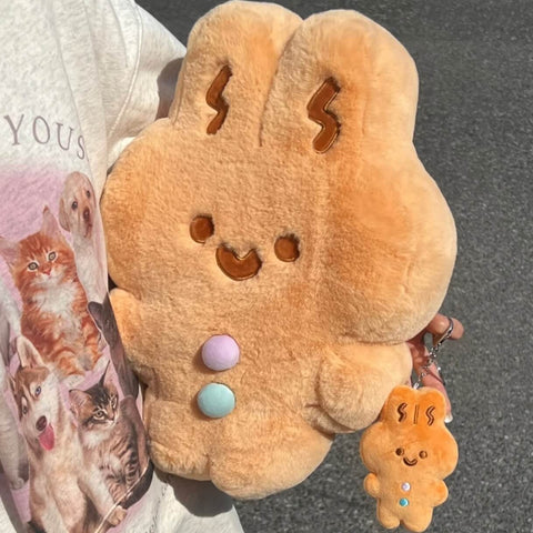 Christmas Kawaii Plush Gingerbread Man Coin Purse Keychain - Cute Zippered Change Pouch with Transparent Pocket Pendent for Women Kids, Ideal for Holiday Gifting, Christmas Party Favors & Stocking Fillers