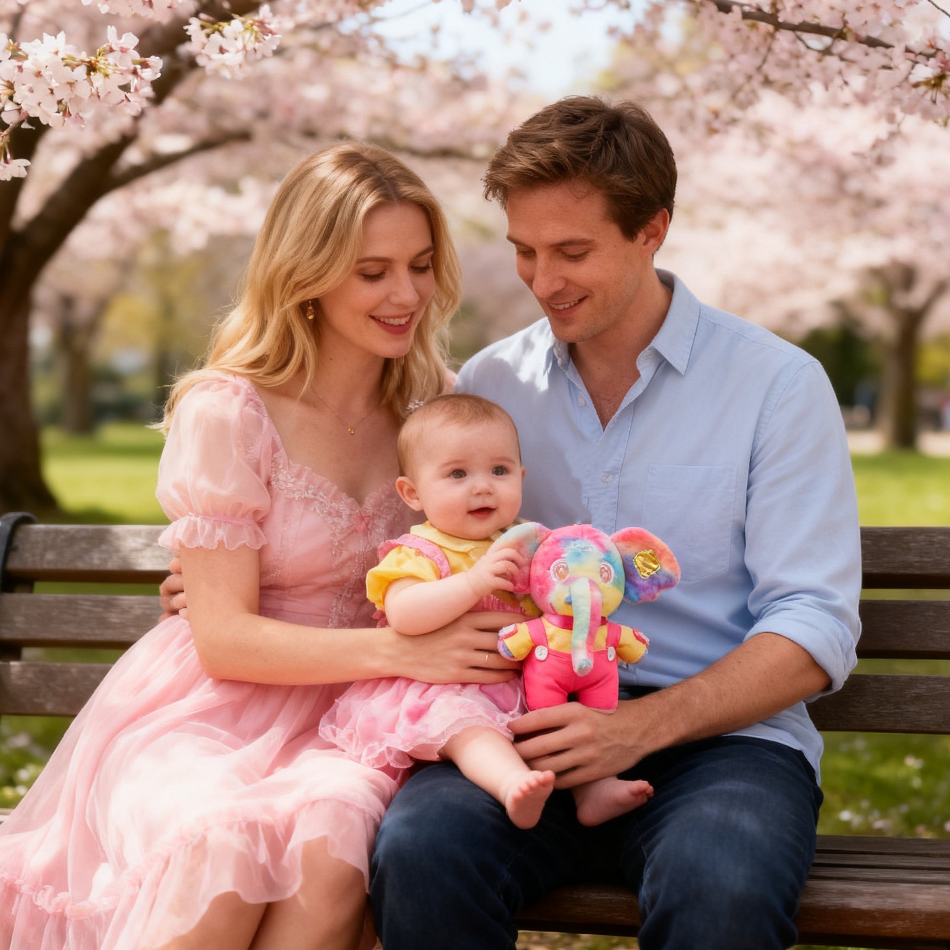 Meet our adorable Patch Elephant, who can't wait to give you a big, soft hug! This playful little buddy is dressed in a charming yellow shirt and pretty pink overalls, with a fluffy pink coat that shines with color. Patch has extra-large, super-soft ears, cute little feet, and a delightfully squeezable tail tip. He loves fun tickle games and giggles—but don’t worry, Patch is as sweet as can be and loves making new friends! With him by your side, every day is filled with joy and laughter.