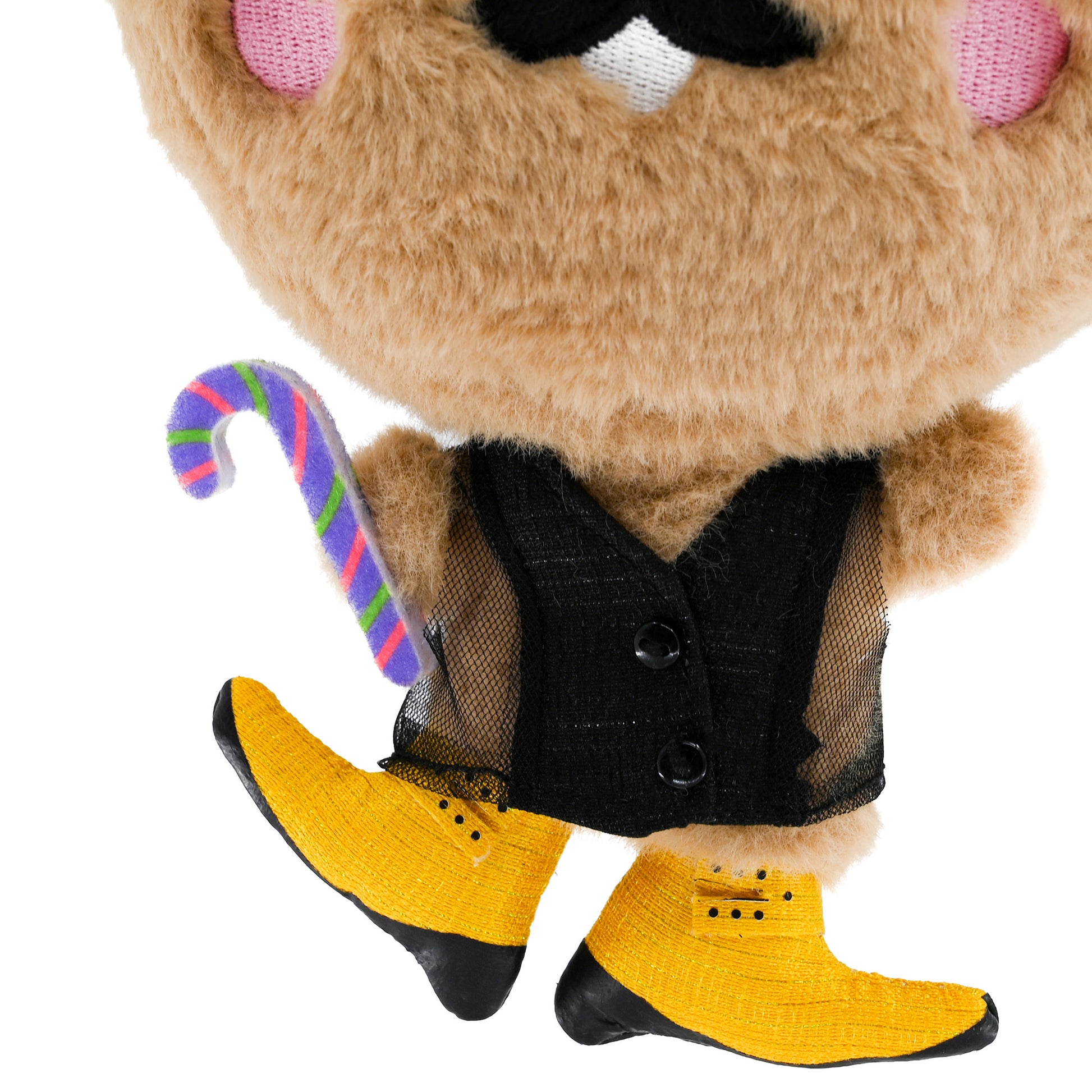 🎄 Elegant Gingerbread Man Design – This isn’t your average cookie! With asymmetrical eyes, a subtle mustache, a tailored suit, a candy cane accessory, and yellow Oxford shoes, this plush gingerbread man brings a playful yet refined holiday vibe.