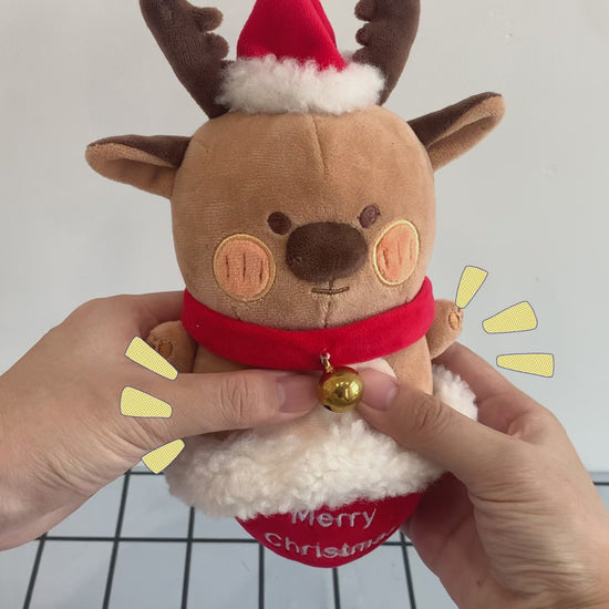 Get your furry friend into the holiday spirit with this adorable Christmas Reindeer Dog Squeaky Chew Toy! Designed with festive cheer in mind, this 7.9-inch plush toy features a cute reindeer wearing a bright red Santa outfit complete with a holiday hat and a jingling bell. The toy’s face is delicately embroidered for safety, and it’s filled with soft PP cotton for a satisfying chew that’s gentle on your dog’s gums. Perfect for medium to large dogs and teething puppies, this toy includes an internal squeaker to capture your pet’s attention and keep them engaged for hours. Whether as a Christmas gift, a party favor, or a boredom-busting chew, this reindeer toy brings joy and festive fun to every play session!