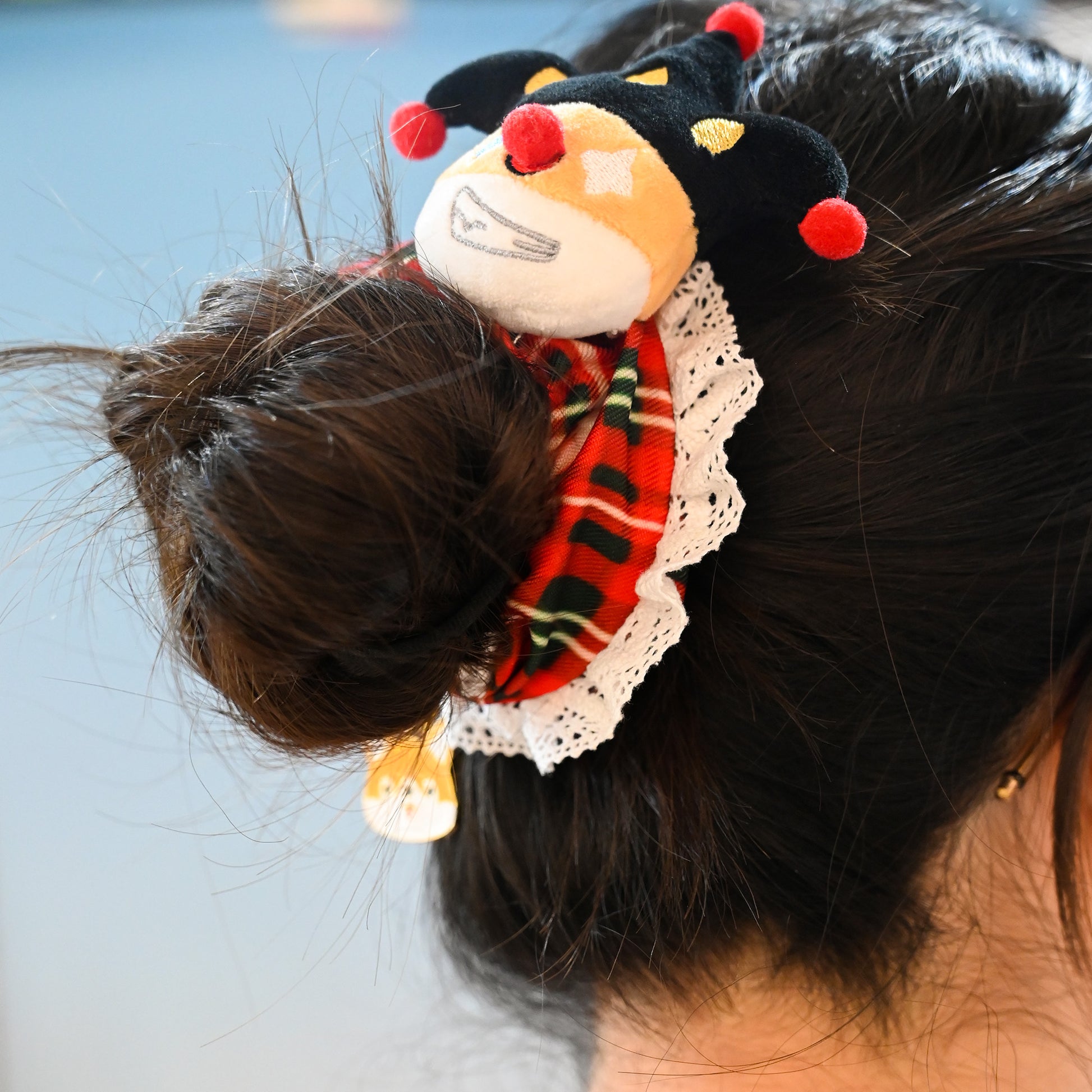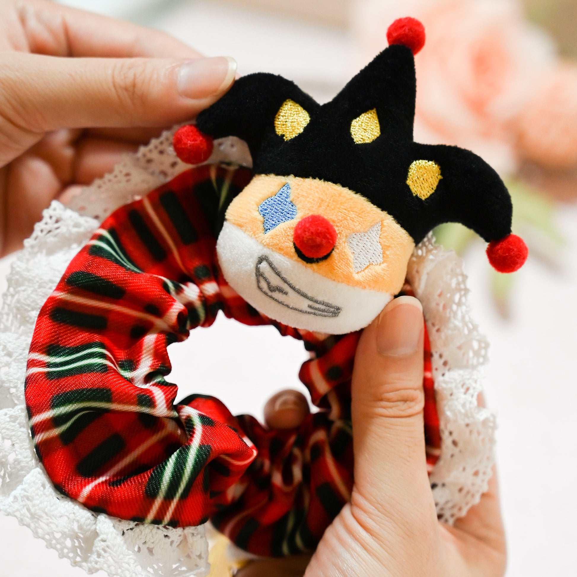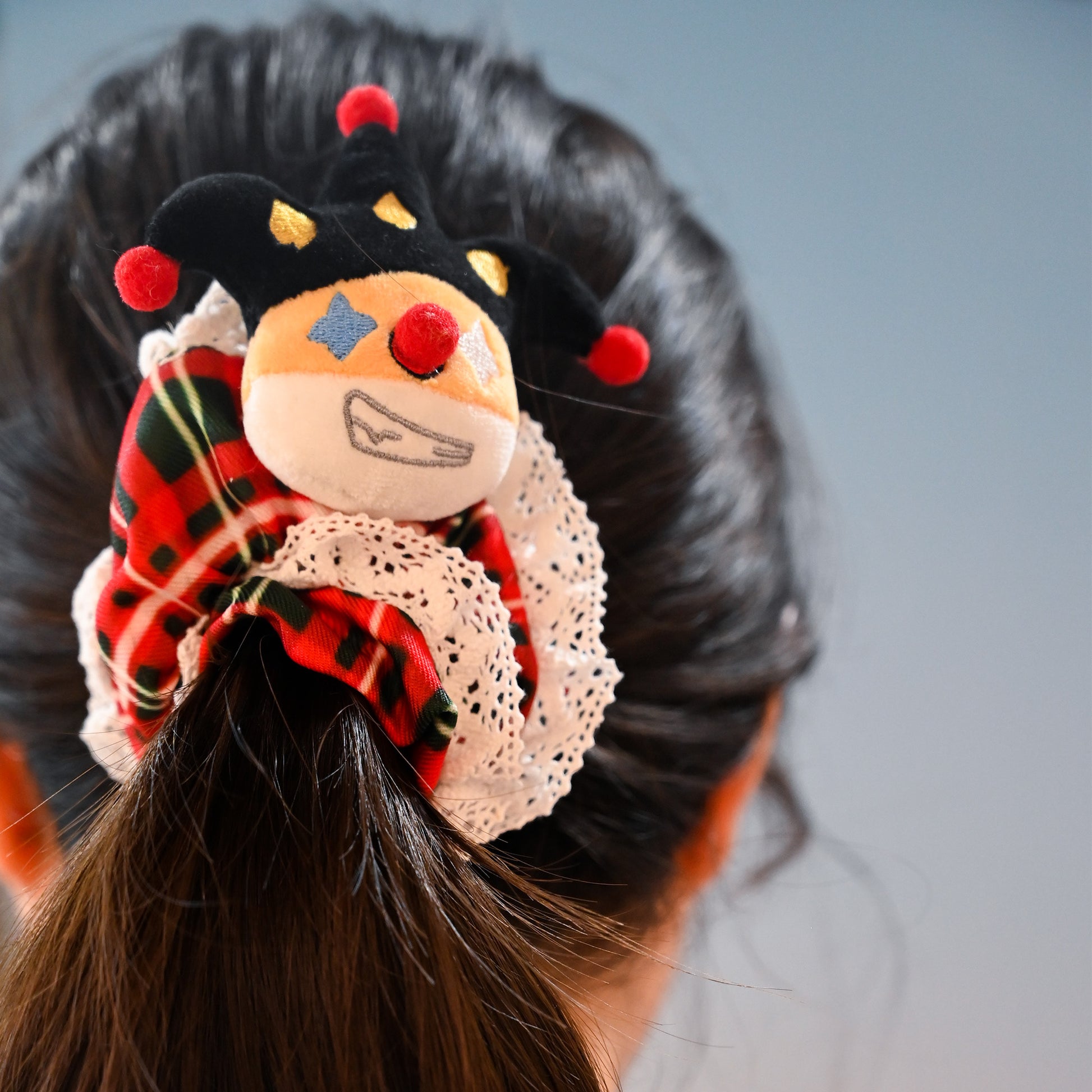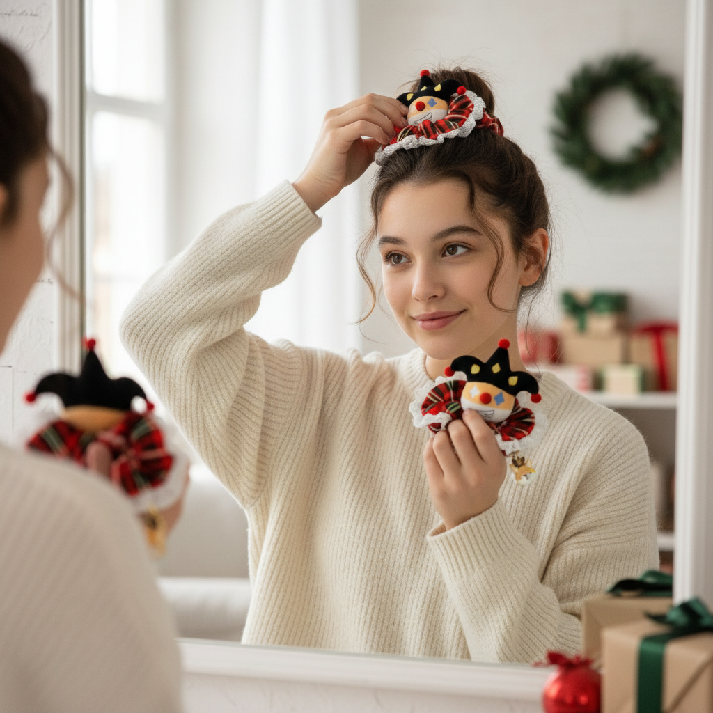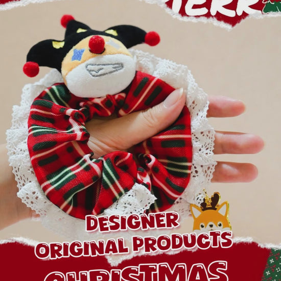 Add a dash of holiday whimsy to your hairstyle with our exclusive Designer Original Clown Corgi Christmas Hair Scrunchies! Featuring a festive red and green checkered pattern accented with delicate white lace, each scrunchie is adorned with an adorable clown-inspired corgi plush charm and a matching metallic corgi pendant. Made from 100% high-quality polyester fabric, these hair ties are soft, stretchy, and gentle on your hair, while the lush pile offers a cozy touch perfect for the winter season. Whether you’re attending a Christmas party, sharing festive moments with loved ones, or looking for a unique stocking stuffer gift, these scrunchies blend holiday charm and everyday wearability in one delightful accessory!