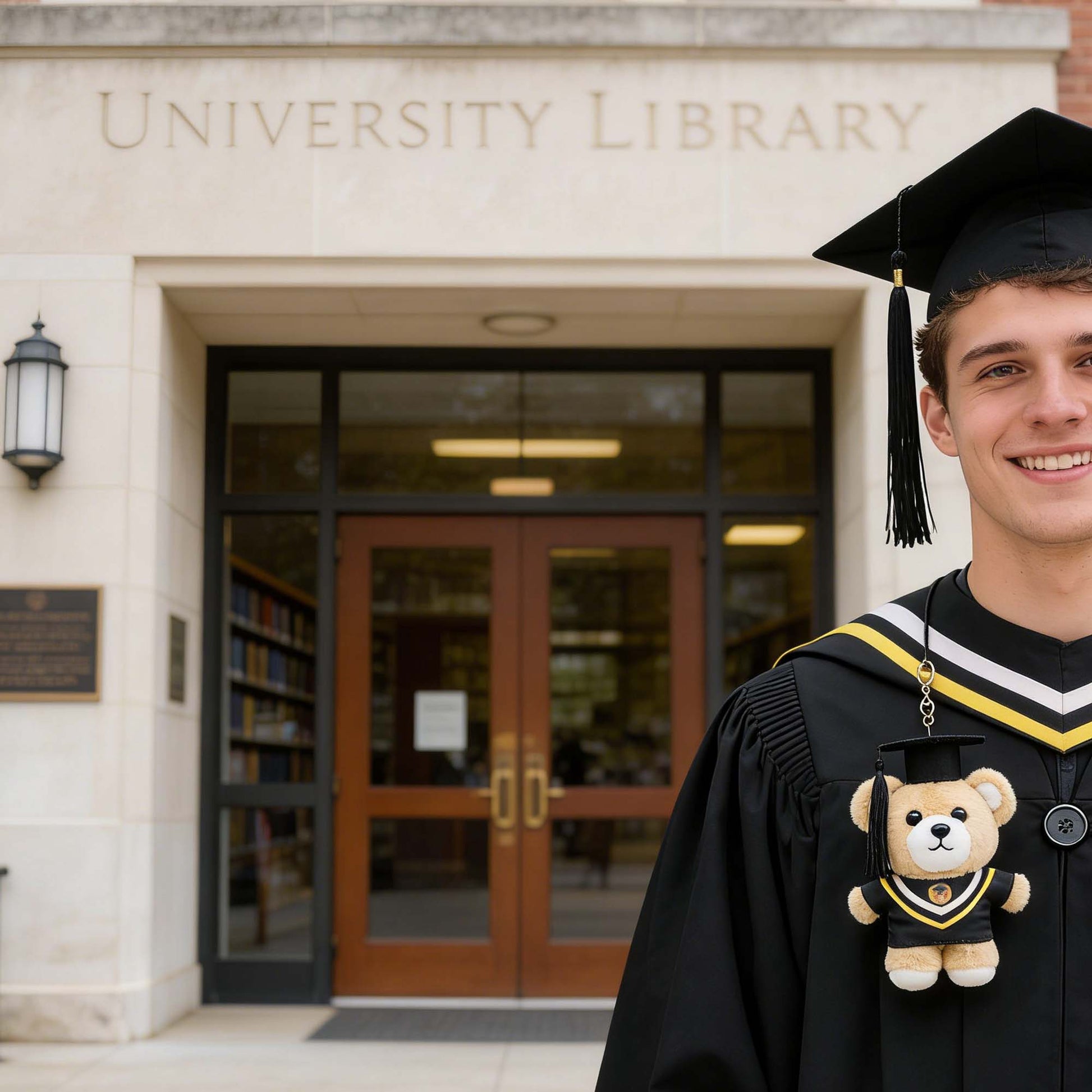 This premium plush bear features a miniature mortarboard (graduation cap) complete with a flowing black tassel, making it an ideal gift for graduates of all ages—from preschool to university.