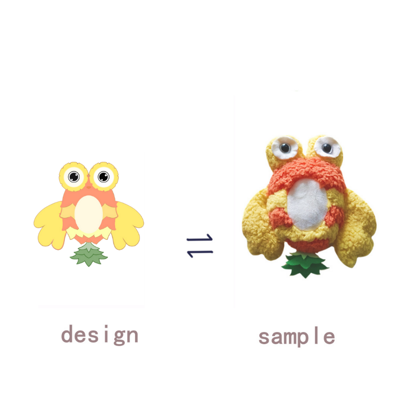 2. This product is a custom product . Our designer will produce the doll you want based on your design picture . Please tell us all your detail requirements of the product such as colors,materials.The sample will be hand-made by our designer.